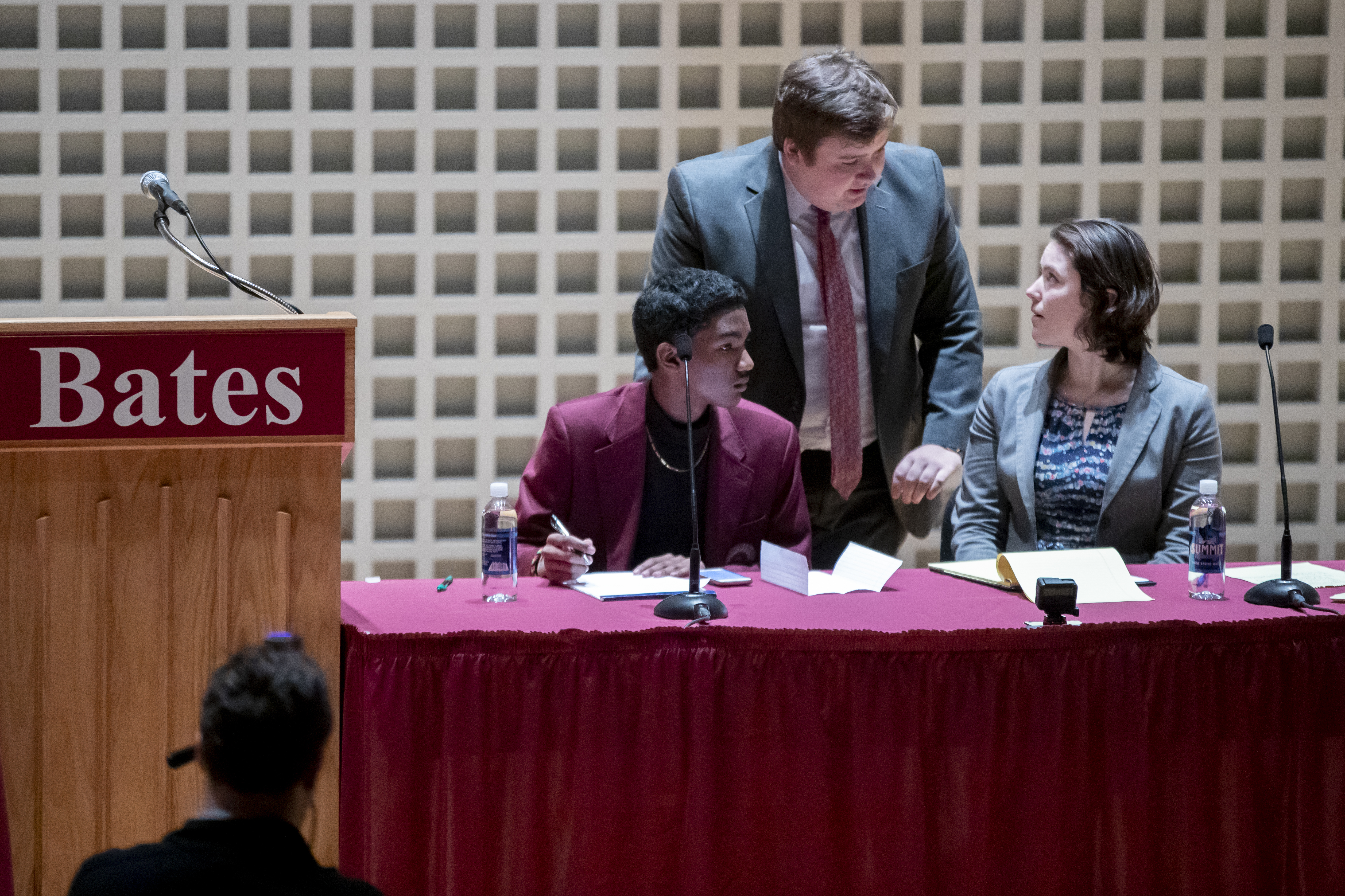 Joining Mansori from Morehouse was fellow junior Zach Manuel. Westberry's fellow Bates debater was Harry Meadow '19 of Princeton Junction, N.J. In the debate, Westberry and Manuel formed one team, Mansori and Meadow the other.